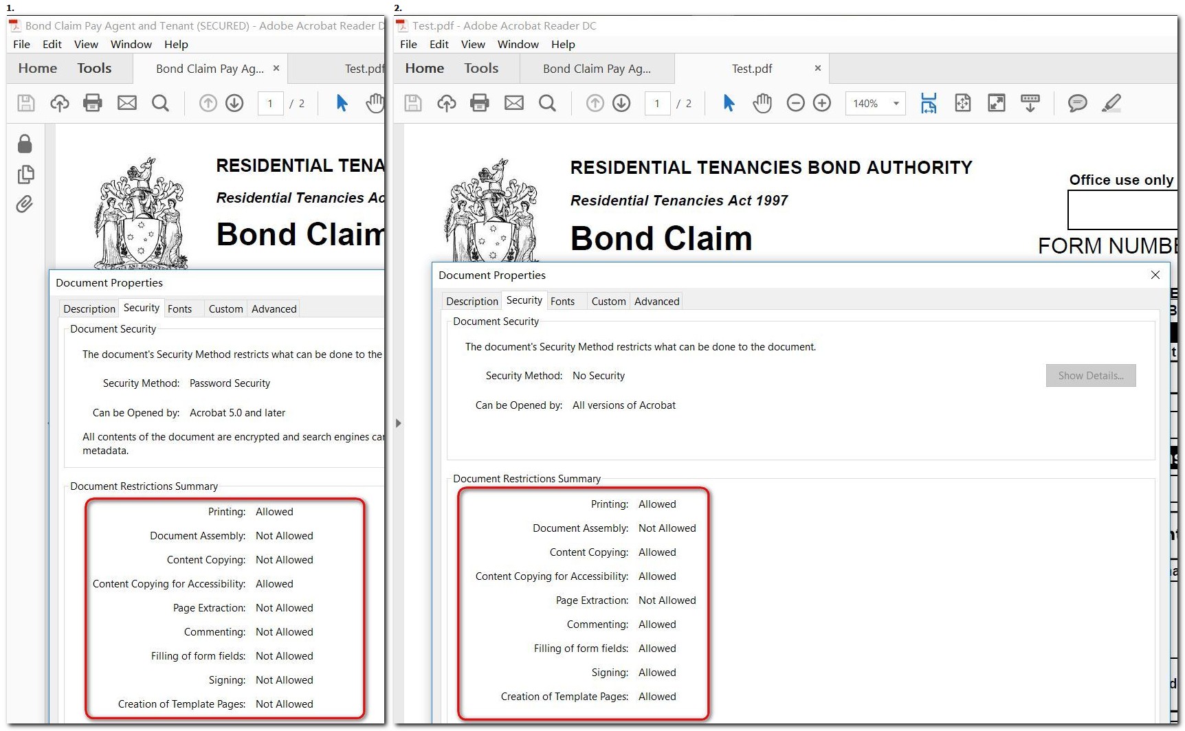 退 Bond 的 PDF 文件,加了密,不允许软件填写、签名,但是允许打印。把这个 PDF 打印(Microsoft Print to PDF)成一个新的 PDF 之后,所有的限制都不存在了。安全性何在呢?